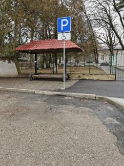 Возле Учреждения оборудовано специальное парковочное место для инвалидов.